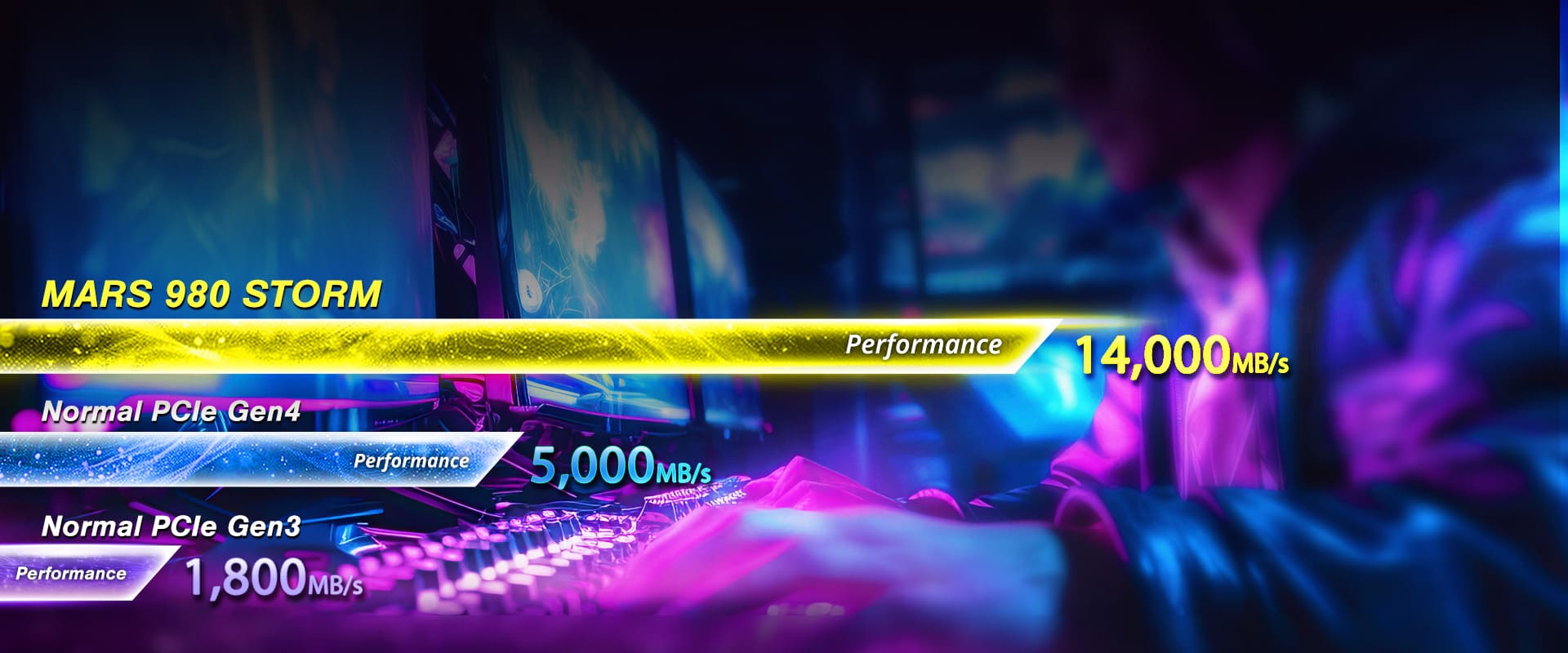 ما المدة التي يجب أن تنتظرها لتحميل الملف؟ يتميز مُحرك الأقراص MARS 980 STORM بسرعة قراءة/كتابة متسلسلة تبلغ 14,000/13,000 ميجابايت في الثانية، وهو ضعف أداء محركات أقراص الحالة الصلبة PCIe Gen4 وأسرع 8 مرات من محركات أقراص الحالة الصلبة القياسية من الجيل الثالث. إنه متوافق تمامًا مع الإصدارات السابقة مع منصات PCIe 4.0 و3.0. أكمل كل تحدٍ في ثوانٍ معدودة!