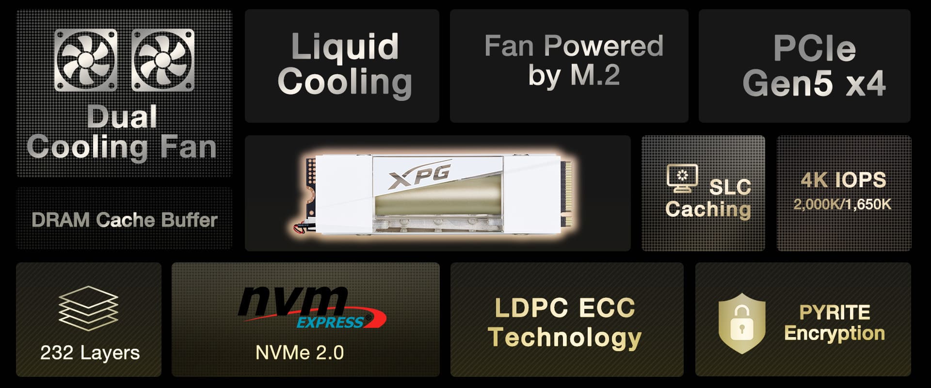أول محرك أقراص صلبة PCIe 5.0 مزود بتبريد مزدوج سائل ومروحة، مصمم لنقل البيانات بدون تأخير وتحقيق أداء مستقر. متوافق مع NVMe 2.0، مُحسَّن لأحمال عمل الذكاء الاصطناعي، ويدعم أحدث منصات إنتل و AMD - تاركًا بصمته في سباق الأداء.