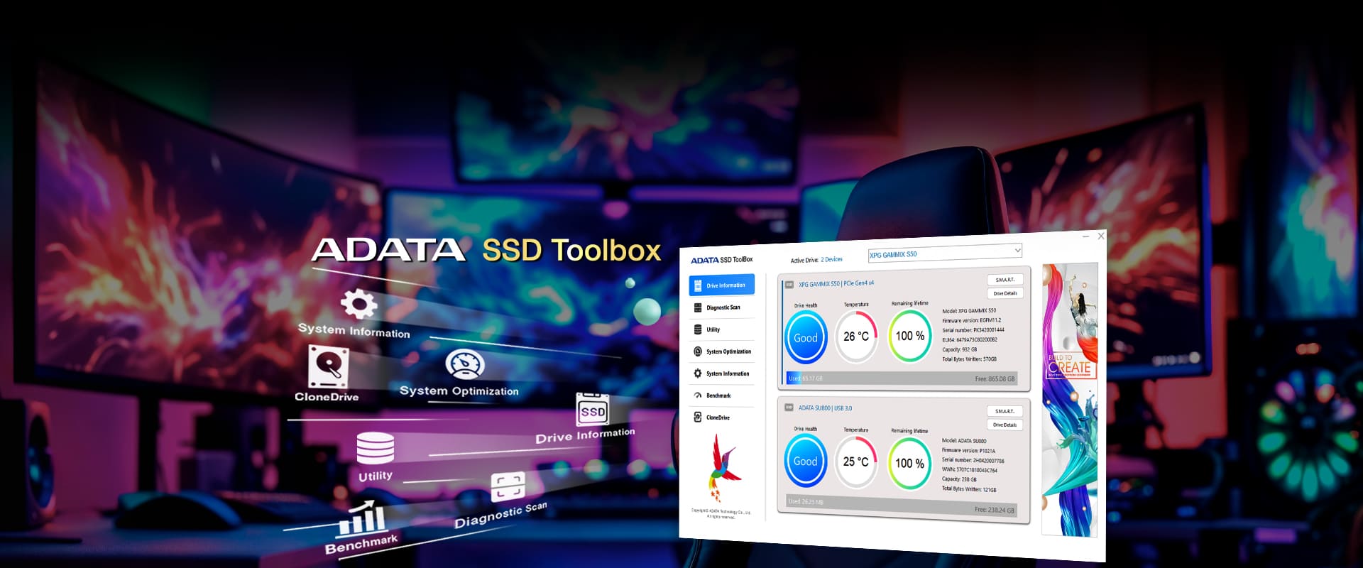 يضمن SSD Toolbox للمستخدمين استخدام أحدث إصدار من البرنامج الثابت للحصول على أفضل أداء، ويستخدم تقنية المراقبة الذاتية والتحليل وإعداد التقارير (S.M.A.R.T.) والتي من خلالها يمكن تتبع حالة SSD في أي وقت