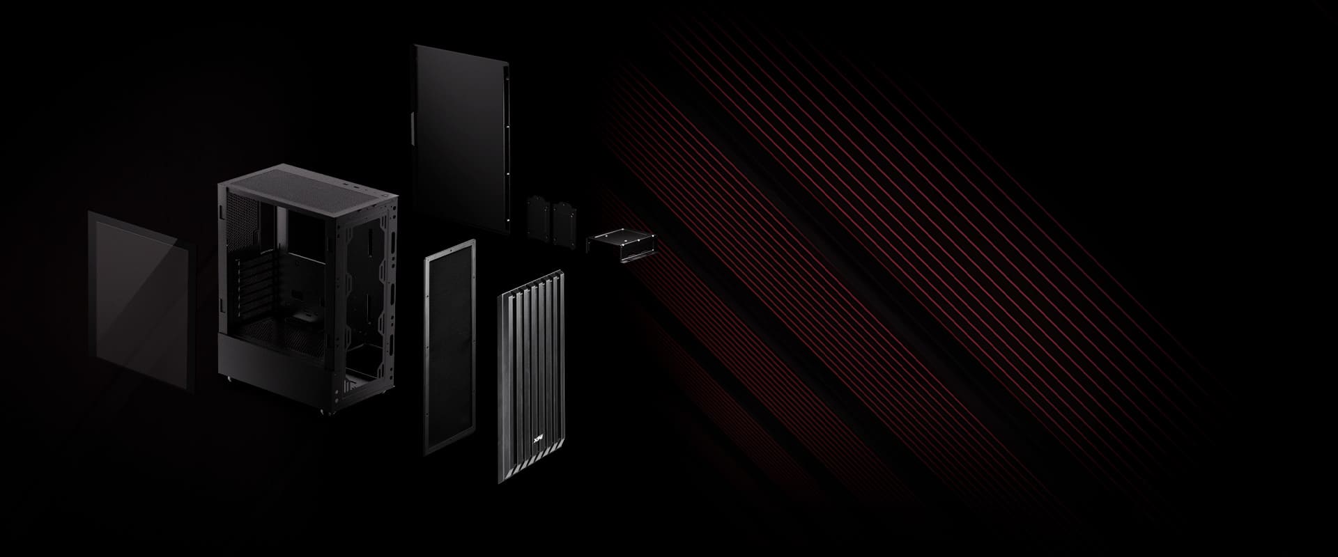 Быстросъёмная магнитная передняя панель и пылевые фильтры спереди и сверху обеспечивают простоту обслуживания. Боковая панель из закалённого стекла толщиной 3мм устанавливается без болтов и позволяет любоваться системой.