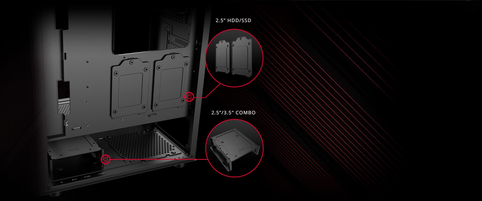 Пользователи могут установить дополнительную корзину для дисков, идущую в комплекте. С её помощью можно разместить два диска в камере блока питания. В корзину можно установить 2 накопителя 3,5 дюйма либо 1 накопитель 2,5 дюйма и 1 накопитель 3,5 дюйма.