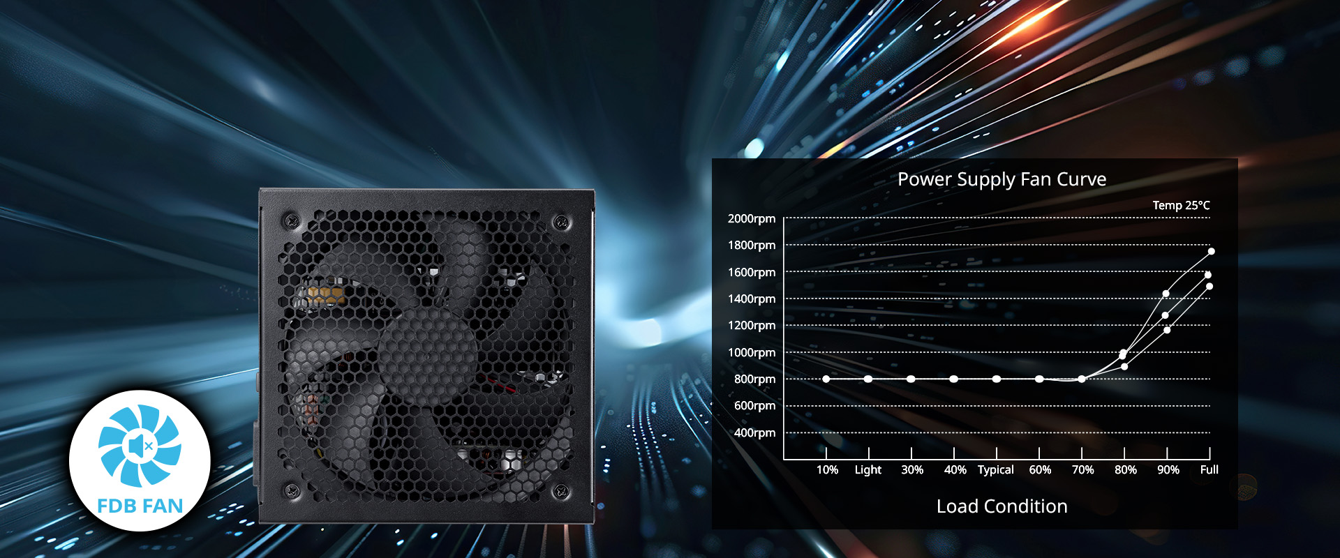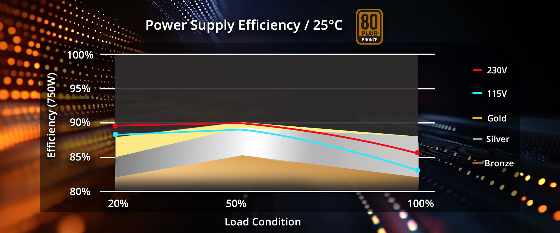 La fuente de alimentación PYLON II cuenta con la certificación 80 PLUS Bronze, lo que proporciona una eficiencia energética óptima para reducir el desperdicio y los costes de electricidad. Ya sea que estés construyendo un nuevo sistema o actualizando uno antiguo, puedes confiar en su rendimiento estable y fiable.