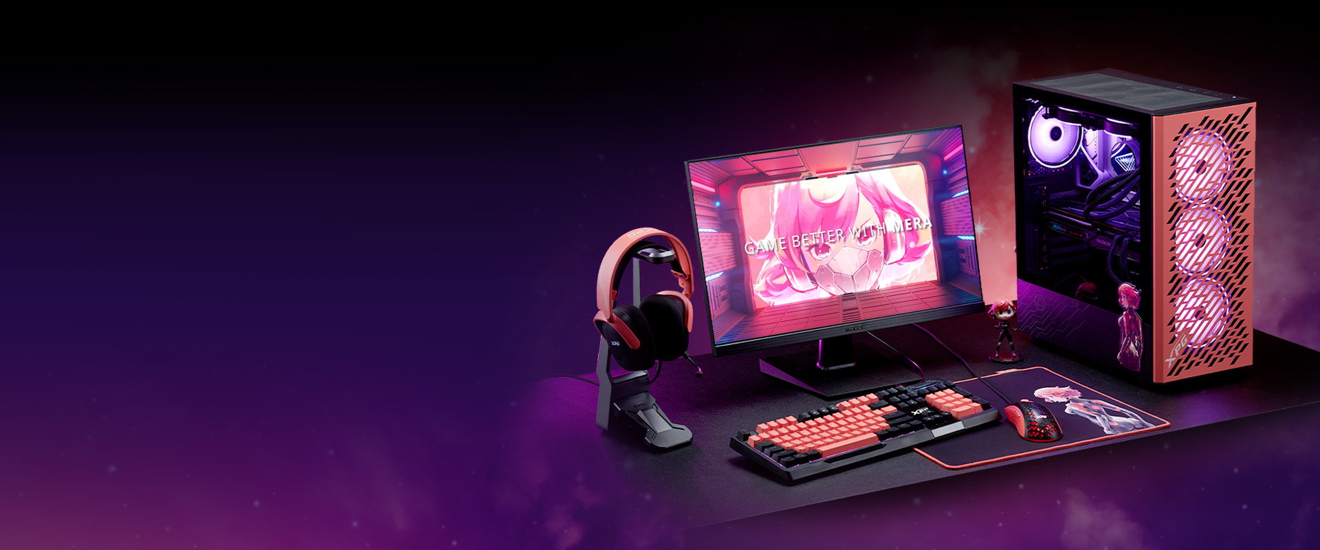Get ready to embark on a thrilling gaming adventure with the ultimate gaming gear by XPG - MERA Edition Gear. Inspired by Mera's iconic hair and battle armor, this collection features stunning living coral accent colors with a black foundation. Don't miss out on this unique opportunity to show off your love for Mera and take your gaming to new heights with XPG MERA edition gaming gear!