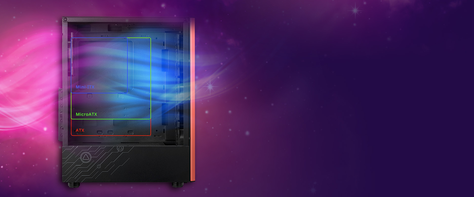 XPG VALOR AIR is a versatile chassis that effortlessly accommodates Mini-ITX, Micro-ATX, and ATX motherboards. Its sleek design optimizes airflow with three front-mounted 120mm fans drawing in fresh air, while a rear-mounted 120mm fan swiftly exhausts heat for superior thermal performance.