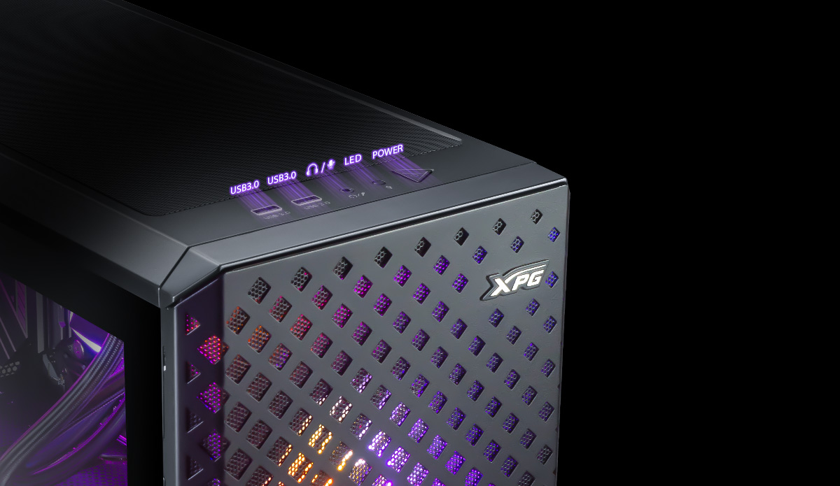 XPG DEFENDER PRO 支持 E-ATX 主板空间,充足的内装空间和 MESH 前面板外观设计,方便玩家组装升级,同时享有显著的个人电竞氛围。