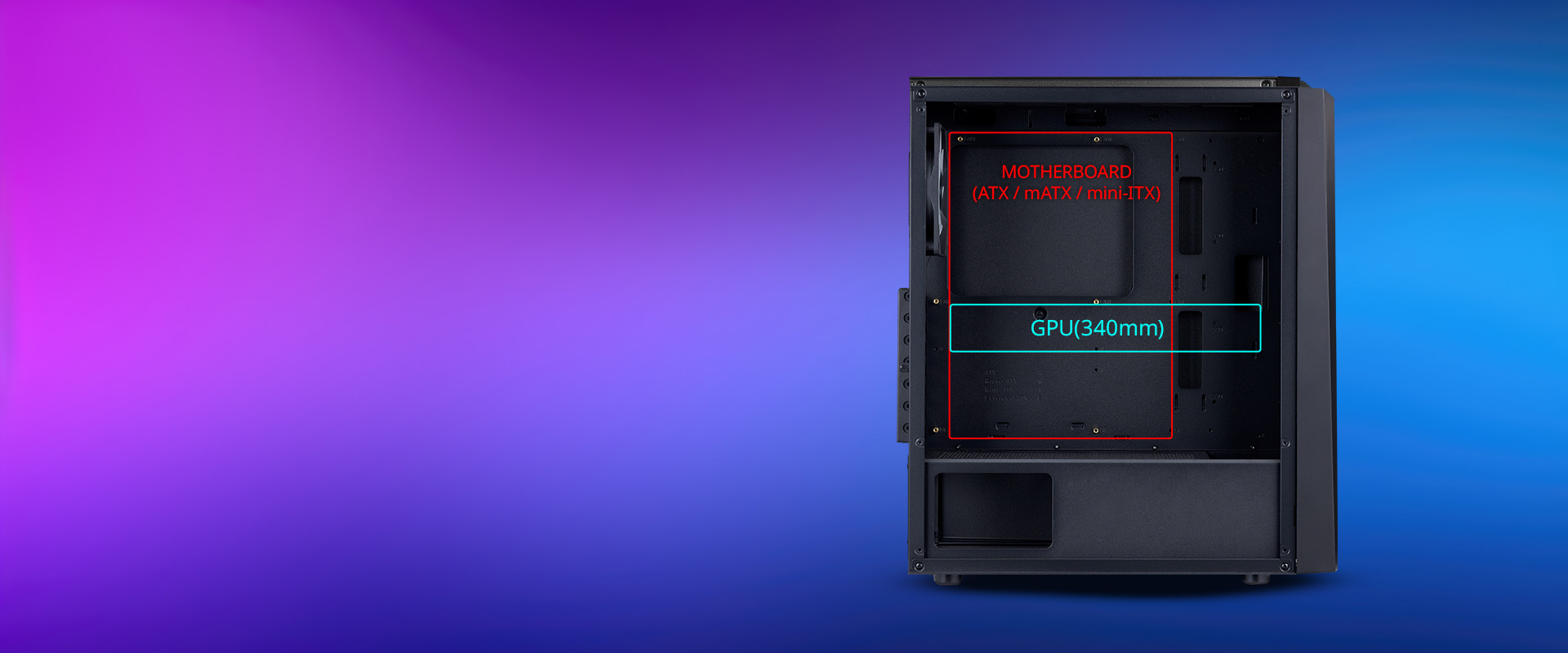 O LANDER 500 é compatível com placas-mãe ATX, Micro-ATX e Mini-ITX, além de GPUs de até 340 mm de comprimento, dando a você espaço para montar com confiança e se adaptar às necessidades atuais ou futuras de hardware. Seja que você está fazendo upgrade ou começando do zero, há espaço de sobra para ir além.