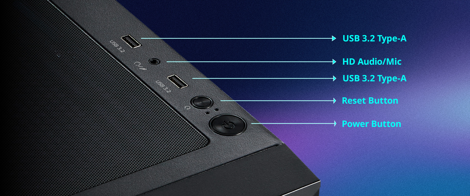 Saia na frente com quatro ventoinhas ARGB de 120 mm pré-instaladas, que proporcionam fluxo de ar instantâneo e iluminação vibrante assim que sai da caixa, para que você possa inicializar e brilhar sem esperar.